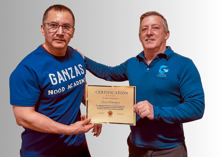 Certification as a hood cleaning technician and inspector in accordance with NFPA Code 96 standards.
